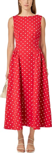 Delightful dots add party-perfect charm to this crisp stretch-poplin midi topped with a scoop-back bodice and finished with a swingy flared skirt.