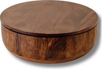 Elevate your tablescape with this gorgeously designed salad bowl crafted from walnut wood with beautifully sloped sides and a matching lid. The lid fits perfectly on top of the bowl and can be set under the bowl when serving for an elevated presentation.
