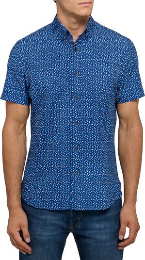 Classic tossed dot print with built-in performance. This short sleeve stretch shirt brings comfort and polish to your off-duty rotation. Designed with a classic button-down collar, interior contrast details, and odor-control tech, it keeps you looking fresh and feeling fresher—whether you're on vacation or just off the clock.