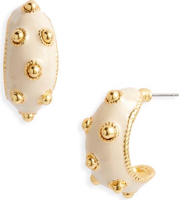 A dimensional polka dot design elevates the texture of these 24-karat gold-plated hoops.