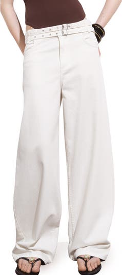 A double belt highlights the waist of these roomy nonstretch jeans that add a modern touch to your everyday look.