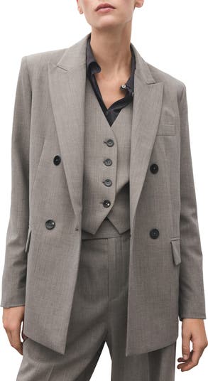 Designed in a double-breasted silhouette, this woolly blazer features traditional detailing and a touch of stretch to keep you moving from work events to weekend occasions.