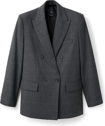 A polished plaid blazer is made in a classic double-breasted silhouette and finished with an airy back vent for easy movement.