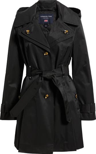 Be undercover chic in this hooded double-breasted trench featuring classic elements like shoulder epaulets and belted cuffs.