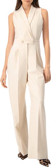 Sleeveless Double Breasted Shawl Collar Jumpsuit with two front buttons.