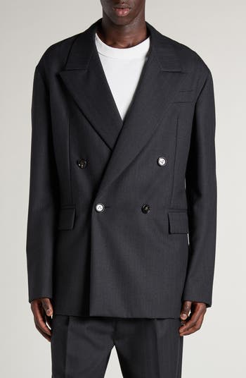 Double Breasted Subtle Stripe Wool Blazer