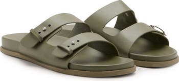 Double buckles offer a just-right fit on this laid-back leather sandal that will become a staple in your warm-weather rotation.