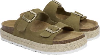 Your new go-to summer shoe. They are suitable for both beach days and city breaks, and can be worn with any outfit. Featuring a double strap, metal buckle design, and a plaited trim around the platform, the comfortable cork and suede sole will keep you comfortable all day.