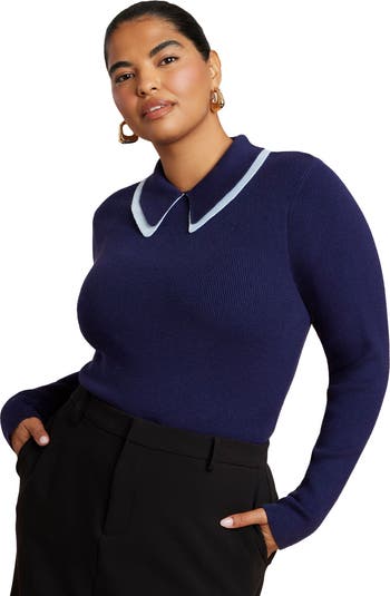 - Lean into modern prep with this double-collared polo sweater that adds subtle intrigue to a classic silhouette. A close fit and ribbed texture keep the look sleek and intentional.