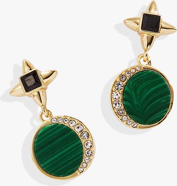 Manifest the vibes you want with these malachite drop earrings. A stone of protection, malachite is believed to help maintain emotional equilibrium and encourage your intuition. Combined with a clear crystal moon representing intuition and your own divine power, they're a gorgeous reminder that you've got everything you need within you.