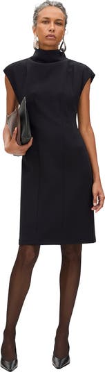 Designed with a high cowl neck, this knee length dress features graphic topstitching and seaming details. Finished with a center back vent and self covered snaps in the neck. Fully lined. Our family-run farm partners across Australia, New Zealand, and Uruguay compassionately raise and shear their sheep in exemplary conditions, free of the cruel practice of mulesing.