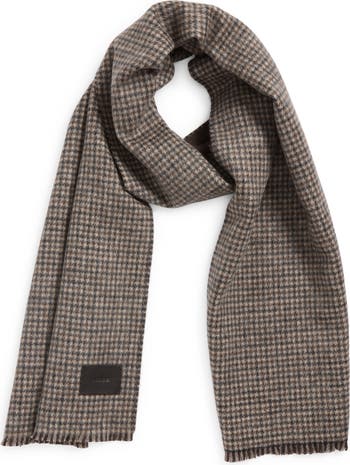 A generous houndstooth pattern brings seasonal cheer to this fringed scarf made from cashmere-kissed wool.