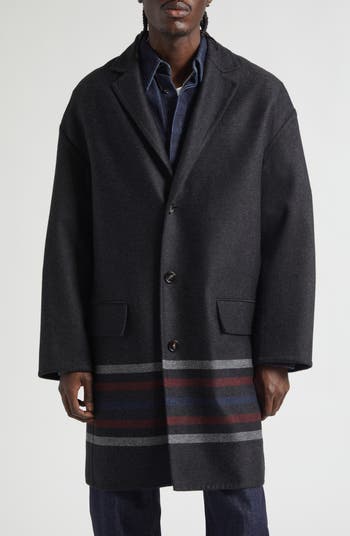 The 'V' for Veneta centers the back yoke of this loosely tailored top coat made in Italy from a double-face wool blend enriched with cashmere.