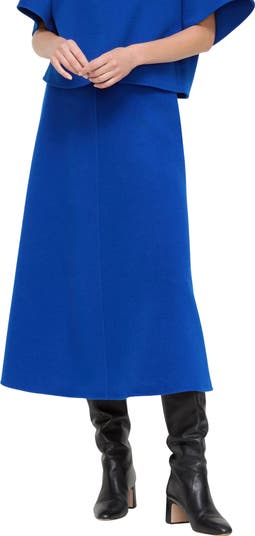 The label's hand-finished double-face cashmere-kissed wool offers lightweight warmth to this vibrantly hued skirt tailored in a flared silhouette that softly sweeps at the calf.