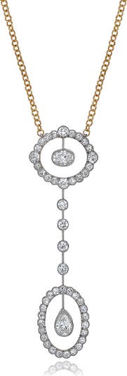 A sleek double-circle pendant shines with the exquisite sparkle of fiery diamonds on this polished chain necklace rendered from gleaming platinum.
