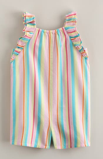 A sweet print and layered flutter sleeves enhance the everyday charm of this all-cotton romper.
