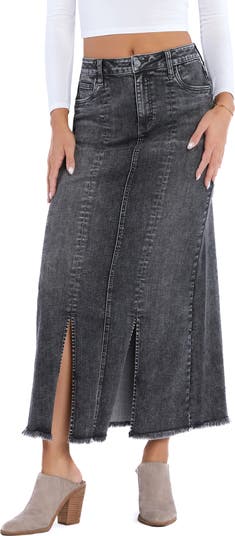 Two front slits add modern detail and easy movement to this clean-lined skirt made from stretch-kissed denim and cut to an on-trend maxi length.