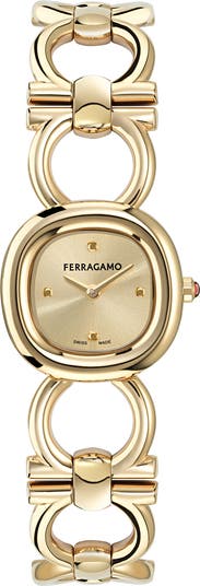 Exhibiting craftsmanship and luxury, this elegant watch is styled with polished stud indexes on a sunray dial and a gleaming bracelet shaped with iconic logo accents.