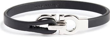 The unmistakable, Ferragamo-favorite double-Gancio buckle stylishly connects this beautifully dyed leather bracelet with a single wrap around the wrist.