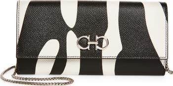 This season's animal-stripe motif animates this functional and fabulous leather wallet punctuated with Ferragamo's iconic Gancio hardware. A dual-compartment interior provides organized storage for cards, cash and more, while a removable chain strap offers a hands-free carrying option.
