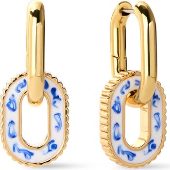 - • Dipped in 14k gold • Marble blue enamel detailing • Two textured hoops for uniqueness • Length: 28mm - 1.1"