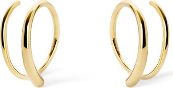 These hoops add the coolest detail to your look as they wrap around your ear, giving you the illusion of two piercings in one. How to wear: place thinner post through piercing. Turn earring approximately 2-3 times until both hoops are showing in the front to make a perfect double-pierced look. Avoid bending, style is delicate.
