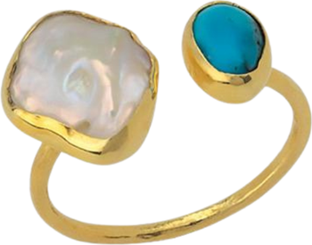 Spero London Double Natural Gemstone Adjustable Sterling Silver Turquoise Ring, Alternate, color, Gold