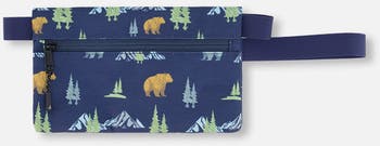 Stash pencils, pens, erasers, and other essential school supplies inside this allover print stationery pouch. Detailed with an allover navy animal print, this pencil case features two separate zippered compartments, a convenient grab handle, and a logo patch on the front. Team it with a matching lunch box and school bag for a perfectly coordinated look!