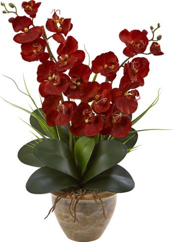 Double Phalaenopsis Harvest Artificial Orchid Arrangement in Ceramic Vase