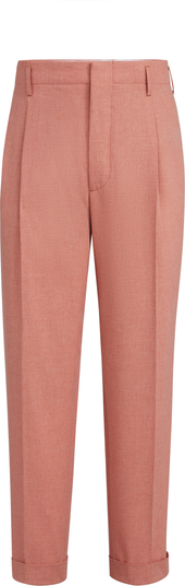 - Zip closure with metal hooks and backing buttonVertical front pocketsDouble pleatBack welt pockets with flap and buttonCupro lining to kneeCuffed hem