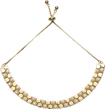 A doubled-up geometric design creates an intricate look for this sterling silver bracelet that houses inset cubic zirconia to up the shine.