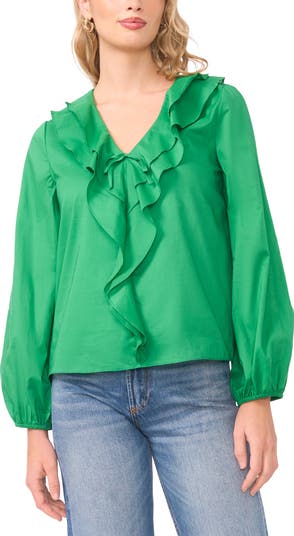 Cascading ruffles and gently puffed sleeves bring the charm to this lightweight cotton top that transitions from brunch to afternoon errands with ease.