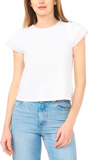Cap sleeves made of contrasting broderie anglaise ruffles frame this supersoft cotton T-shirt.