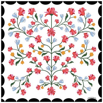 "Floral Echo" is a poetic celebration of nature’s rhythm and harmony, featuring blooming florals arranged in graceful symmetry. The design captures both delicacy and vibrancy, with each petal illustrated in vivid detail to create a timeless botanical motif. Featuring different rich color palettes on each side, it offers versatile styling and a fresh look from every angle. Crafted with exceptional attention to detail, the scarf also boasts hand-rolled edges that add a luxurious finish.