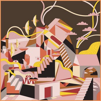 "Dreamlike" is inspired by the surreal landscapes of dreams. It features a deconstructed blend of buildings, people, flowers, and geometric shapes that merge two-dimensional and three-dimensional space. The scarf's colors are different on each side. The craftsmanship is exceptional, with hand-rolled edges adding to its luxurious finish. This silk-wool blend scarf combines the softness of silk with the warmth of wool. Lightweight yet cozy. A versatile accessory to elevate any outfit.