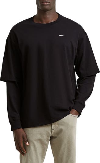 Two-piece sleeves create the layered design of this relaxed organic-cotton T-shirt that gives you the look of two pieces with the ease of one.
