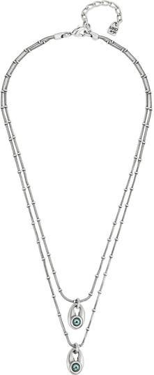 Twin chains run side by side, each set with rich blue crystals that flash with movement and layer effortlessly with shorter pieces.