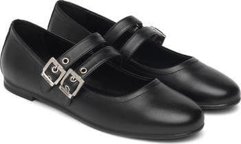 Twin mary jane straps add a contemporary twist to this essential ballet flat fashioned from smooth Italian leather.
