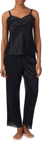 Designed for the art of winding down, these lace-trimmed satin PJs team a breezy cami with ankle-skimming pants that swish just enough to sauntering to bed feel like a red-carpet moment.