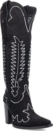 Western style goes glam with this over-the-knee boot featuring shimmering crystal embellishments as well as a comfort-cushioned footbed.