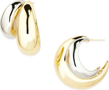 Sculptural curves and a high-shine finish bring standout appeal to these two-tone hoop earrings that transition effortless from day to night.
