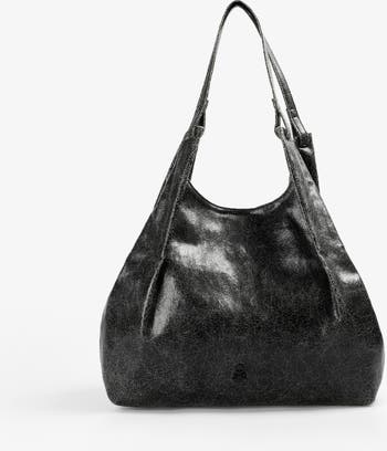 Metallic shopper bag made of PU with a worn effect and inner lining with zippered pocket