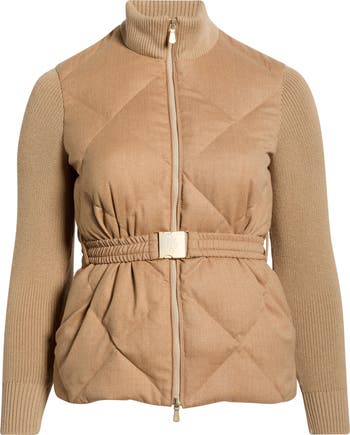 Part puffer, part cardigan, this hybrid jacket offers lightweight warmth with a combination of virgin-wool-blend knit sleeves and a down-filled channel-quilted core.