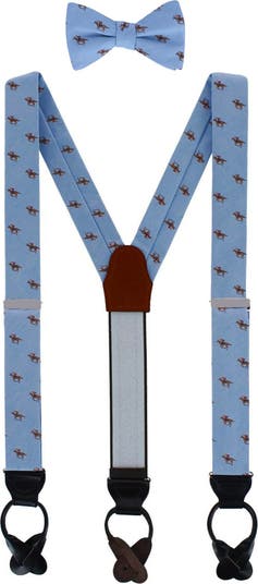 - Includes Down The Stretch Racehorse Linen Blend Button End Braces and Bow Tie