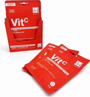 Dr Botanicals Ultra Brightening Facial Mask with Vitamin C and Hyaluronic Acid Pack of 10