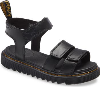 The sandals are Velcro which Makes it very easy for my 4 1/2 granddaughter to put on and take off. Also, these shoes are very light, not heavy like Doc Martins usually are. Love these sandals and highly recommend!