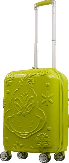 Bring a touch of holiday mischief to your travels with this officially licensed FUL Dr. Seuss Grinch 22" Hardside Luggage. Featuring a vibrant Grinch-green color, this suitcase showcases a unique 3D molded design of the iconic Grinch face and snowflake accents, bringing the beloved Dr. Seuss character to life. Made with a durable exterior, this carry-on sized luggage is built to withstand the rigors of travel while offering whimsical charm. With 360-degree spinner wheels and a telescopic handle, maneuvering through busy airports is a breeze. This Grinch luggage is not just a holiday delight but a year-round statement piece for any fan of Dr. Seuss.