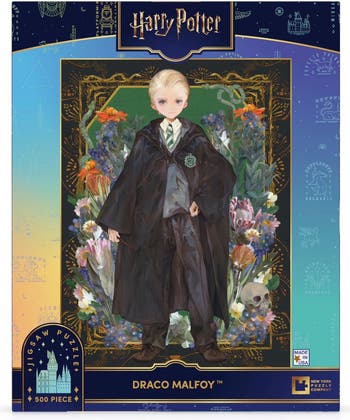 Delve into the intriguing world of Slytherin with the Draco Malfoy Yume 500 piece jigsaw puzzle, part our new 2025 Harry Potter art series. This striking illustration reimagines Draco in in the popular yume anime-inspired style, dressed in his signature Slytherin robes. At his feet lies a skull, subtly hinting at his complicated connection to Voldemort through his father. Look closely to uncover snakes hidden among the surrounding flowers, adding an air of mystery to the artwork.\r\n\r\nCrafted with random die-cut pieces—ensuring no two are alike—this puzzle offers a unique and captivating challenge for fans and collectors alike. Proudly made in the USA, this puzzle celebrates exceptional craftsmanship and a creative tribute to the Harry Potter universe.\r\n\r\nPerfect for fans of Draco Malfoy, anime-inspired art, and the wizarding world, this puzzle invites you to piece together a highly stylized and thought-provoking rendition of one of Slytherin’s most iconic characters.
