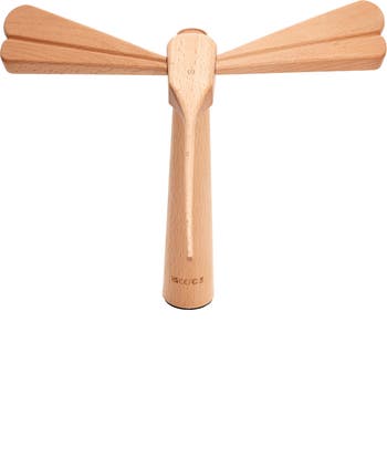 Deftly merging both form and function, this balancing light is both a sculptural piece of art and a useful lamp for your space. Laser-cut from wood, a dragonfly with LED lights hidden under the wings balances delicately on the minimalist cylindrical base or any other surface you choose.