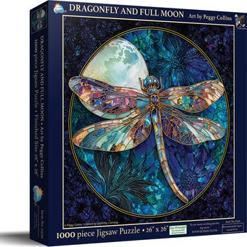 Dragonfly and Full Moon 1000 pc Jigsaw Puzzle by SunsOut - 1000 Piece Jigsaw Puzzle - Completed Size: 26" x 26" - Puzzle Artist: Peggy Collins - Interlocking Pieces and Durable Construction: SunsOut jigsaw puzzles feature interlocking pieces that fit securely, making assembly easier and reducing frustration. -Ages: 15 years and older - Perfect for adults and seniors. SunsOut puzzles ensure high manufacturing standards ensuring their commitment to quality and customer service. - SunsOut puzzles use soy based inks, high quality puzzle board. As this is a jigsaw puzzle: assembly is required and batteries are not required.